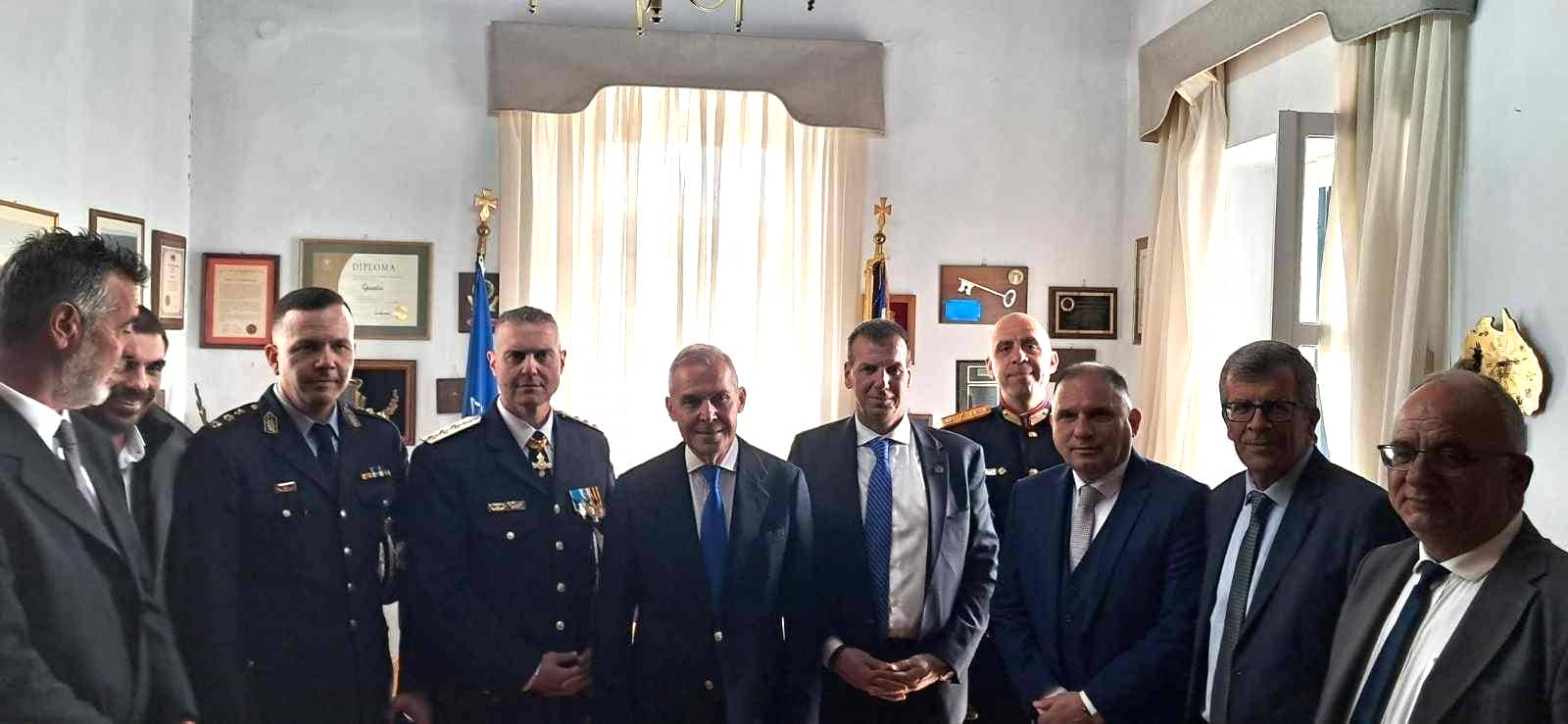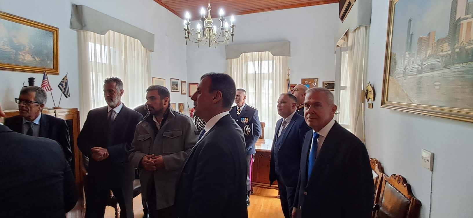Ο Δήμαρχος Σπάρτης, κ. Μιχάλης Βακαλόπουλος, παρουσία του Προέδρου του Δημοτικού Συμβουλίου, κ. Στέφανου Βρεττάκου και Αντιδημάρχων, υποδέχθηκε στο γραφείο του στο Ιστορικό Δημαρχείο, τον εκπρόσωπο της Ελληνικής Κυβέρνησης και Υφυπουργό Εθνικής Άμυνας, κ. Αθανάσιο Δαβάκη, τον εκπρόσωπο του Κοινοβουλίου και βουλευτή Λακωνίας, κ. Νεοκλή Κρητικό, τον Αντιπεριφερειάρχη της Περιφερειακής Ενότητας Λακωνίας, κ. Θεόδωρο Βερούτη, τον Διοικητή του ΚΕΕΜ, Ταξίαρχο κ. Γιώργο Ζορμπά και τον Αστυνομικό Διευθυντή Λακωνίας, Ταξίαρχο κ. Κωνσταντίνο Σταματόπουλο.