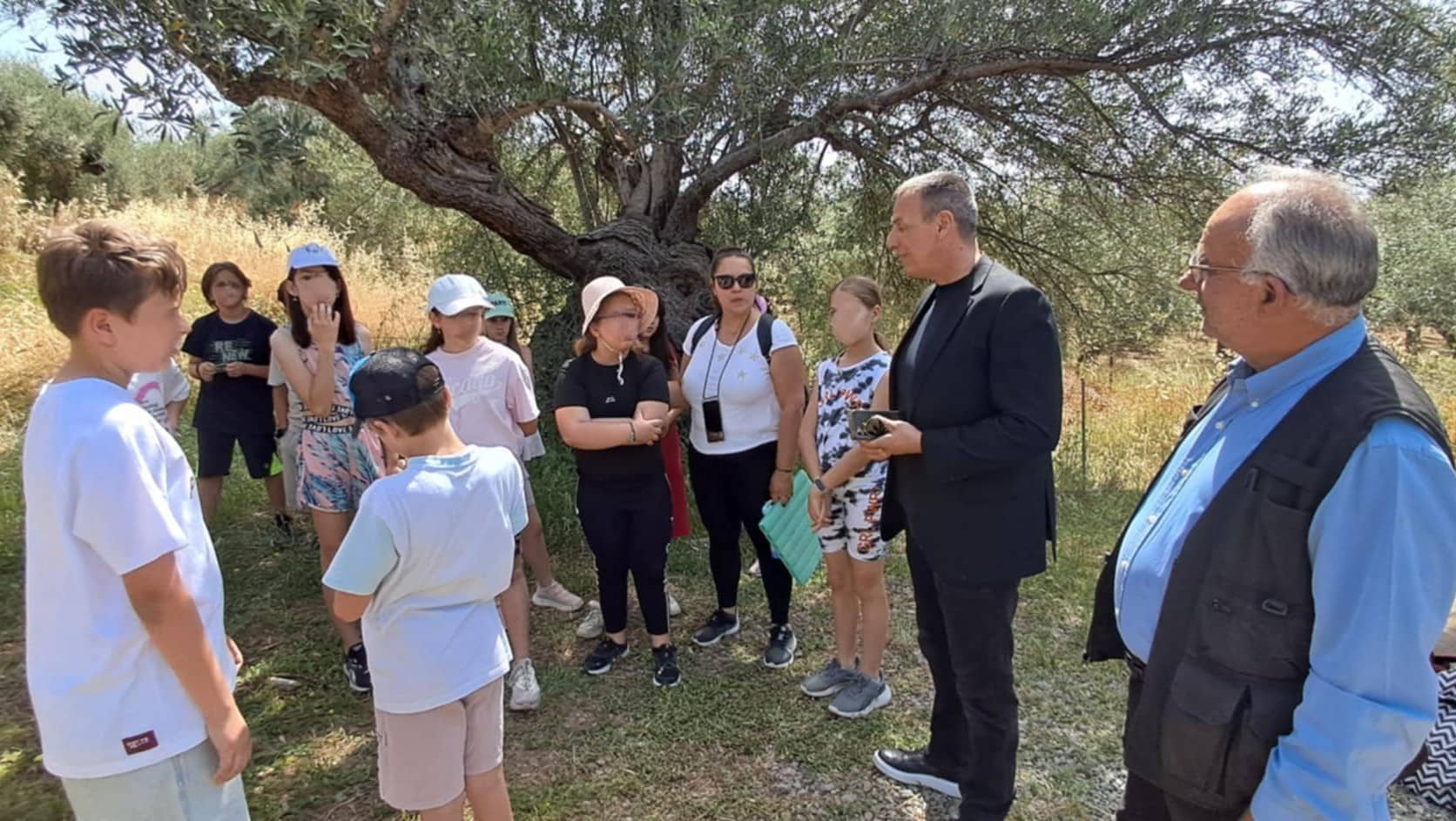 Οι μαθητές ξεναγήθηκαν στον χώρο της αρχαίας Ακρόπολης Σπάρτης και ενημερώθηκαν για τον ρόλο της ελιάς και του λαδιού στην οικονομική και κοινωνική ζωή των αρχαίων Σπαρτιατών.