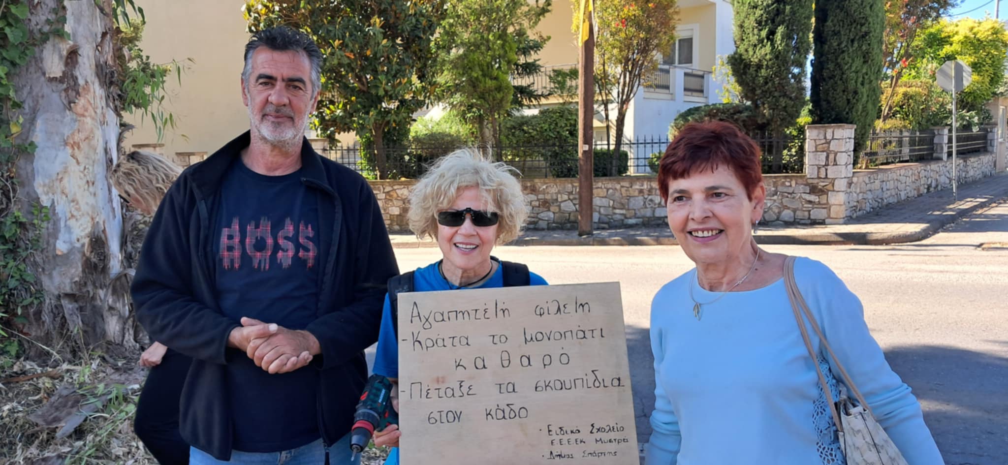 Συγκεκριμένα, ο Αντιδήμαρχος Καθαριότητας, κ. Δημήτρης Γιαννόπουλος, η Εντεταλμένη Δημοτική Σύμβουλος Δ.Ε., κ. Ευγενία Σοφού-Παπαστάθη και η Διευθύντρια του Ειδικού Σχολείου ΕΕΕΚ Μυστρά, κ. Άννα Σωπιάδου, μαζί με τους εκπαιδευτικούς και τους μαθητές του σχολείου, τοποθέτησαν ειδική σήμανση καθ’ όλη τη διαδρομή του μονοπατιού, που βρίσκεται απέναντι από το Άλσος Γουδέ, προκειμένου να ευαισθητοποιούν τους διαβάτες και τους περαστικούς να διατηρούν τον χώρο καθαρό.