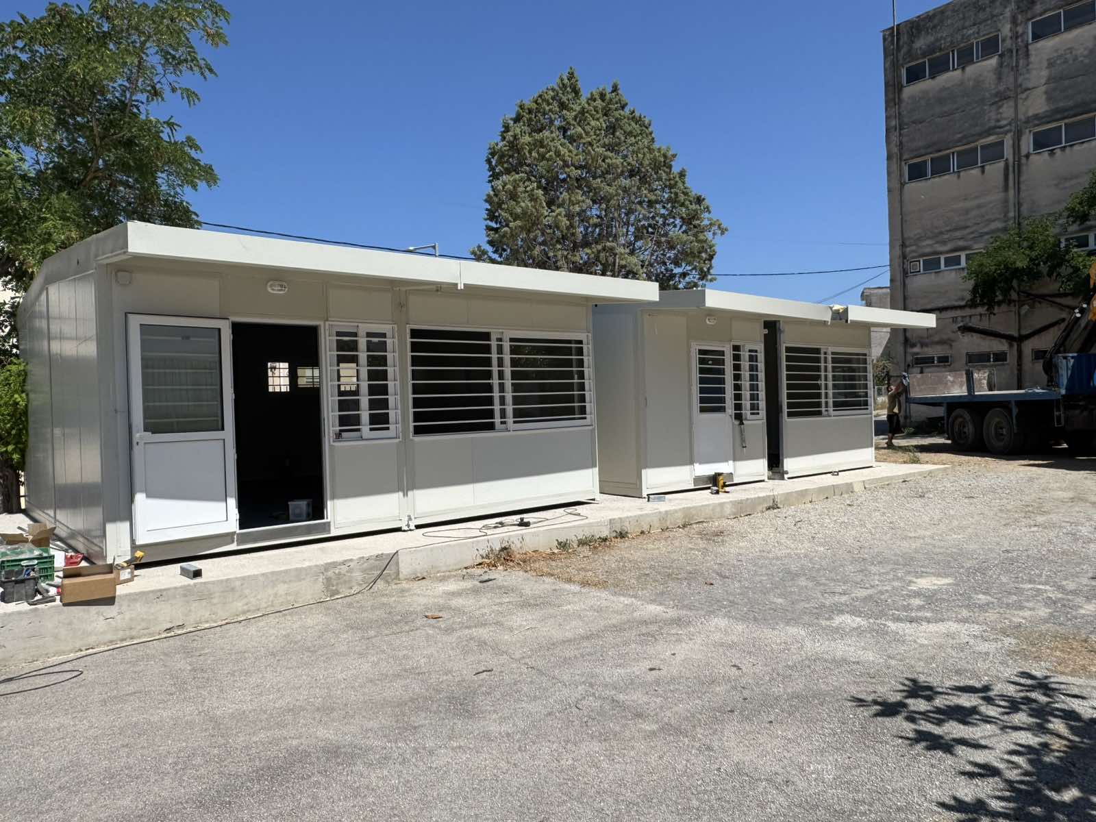 Πιο συγκεκριμένα, ολοκληρώθηκε η τοποθέτηση τριών αιθουσών στον προαύλιο χώρο του Εσπερινού Λυκείου Σπάρτης, όπου συστεγάζεται πλέον και το 1ο Γυμνάσιο.
