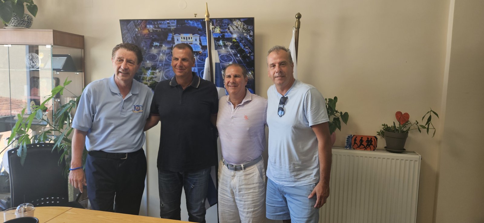 Πιο συγκεκριμένα, ο Δήμαρχος Σπάρτης, παρουσία του Εντεταλμένου Δημοτικού Συμβούλου για τον Πολιτισμό, κ. Σπύρο Σελίμο, συναντήθηκε με τον επιχειρηματία και εκπρόσωπο του Φιλανθρωπικού Ιδρύματος «The Golden Greek: Harry Agganis», κ. Gregory Αγγάνη, τον δημοσιογράφο και συγγραφέα του βιβλίου «Harry Agganis», κ. Νίκο Τσιώτο, τον Υπεύθυνο του Τμήματος της Ελληναμερικανικής Ακαδημίας Καλαθοσφαίρισης (Νέας Υόρκης), κ. Δημήτρη Πριστούρη, τον νομικό κ. Ηλία Παπαλυμπέρη, τον εκπρόσωπο και πρώην Πρόεδρο της Παλλακωνικής Ομοσπονδίας Αποδήμων Αμερικής-Καναδά, κ. Φώτη Κόκκοτο, που αποτελεί και γέφυρα διασύνδεσης του Δήμου με τους Αποδήμους Λάκωνες των ΗΠΑ, καθώς και τον Πρόεδρο του Πολιτιστικού Συλλόγου Αποδήμων & Επαναπατρισθέντων Λακώνων «Ο Λεωνίδας», κ. Γιώργο Φουντούκη.