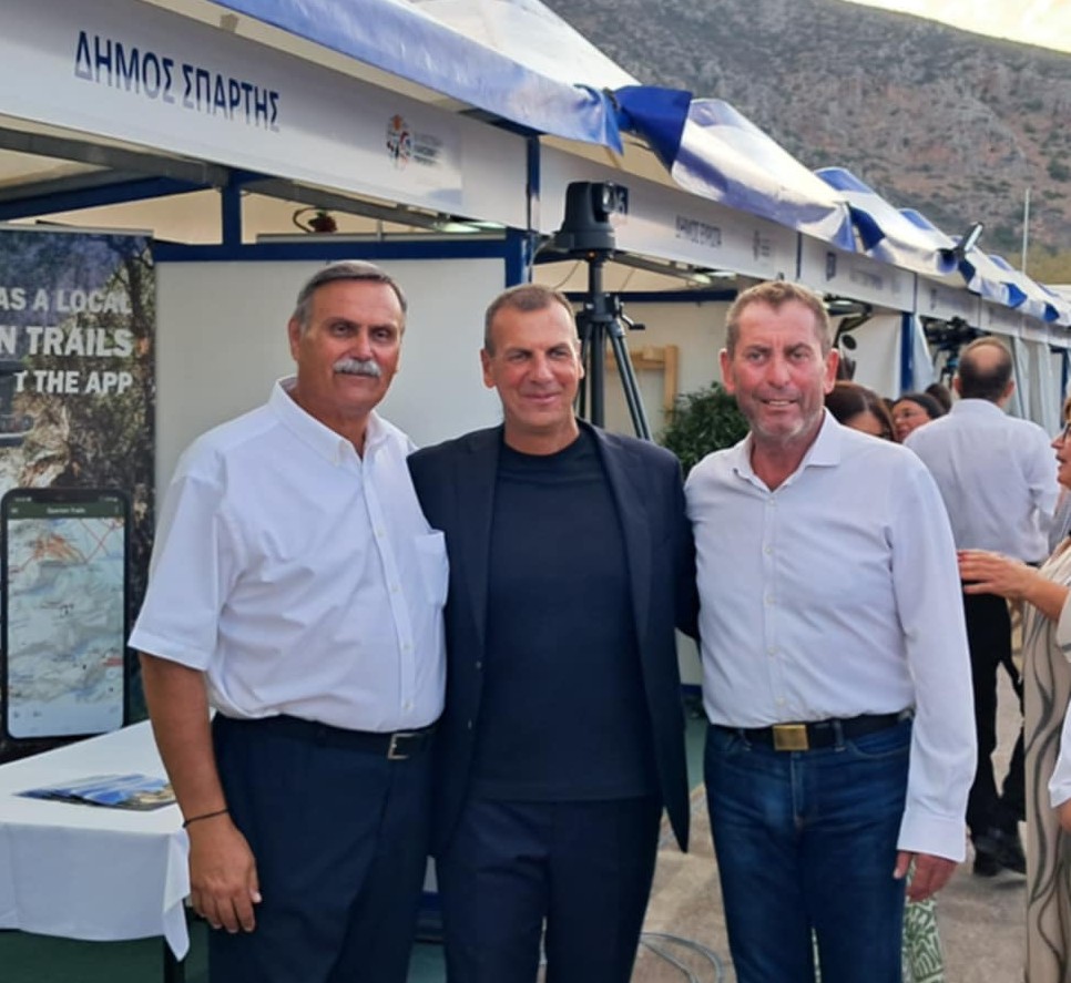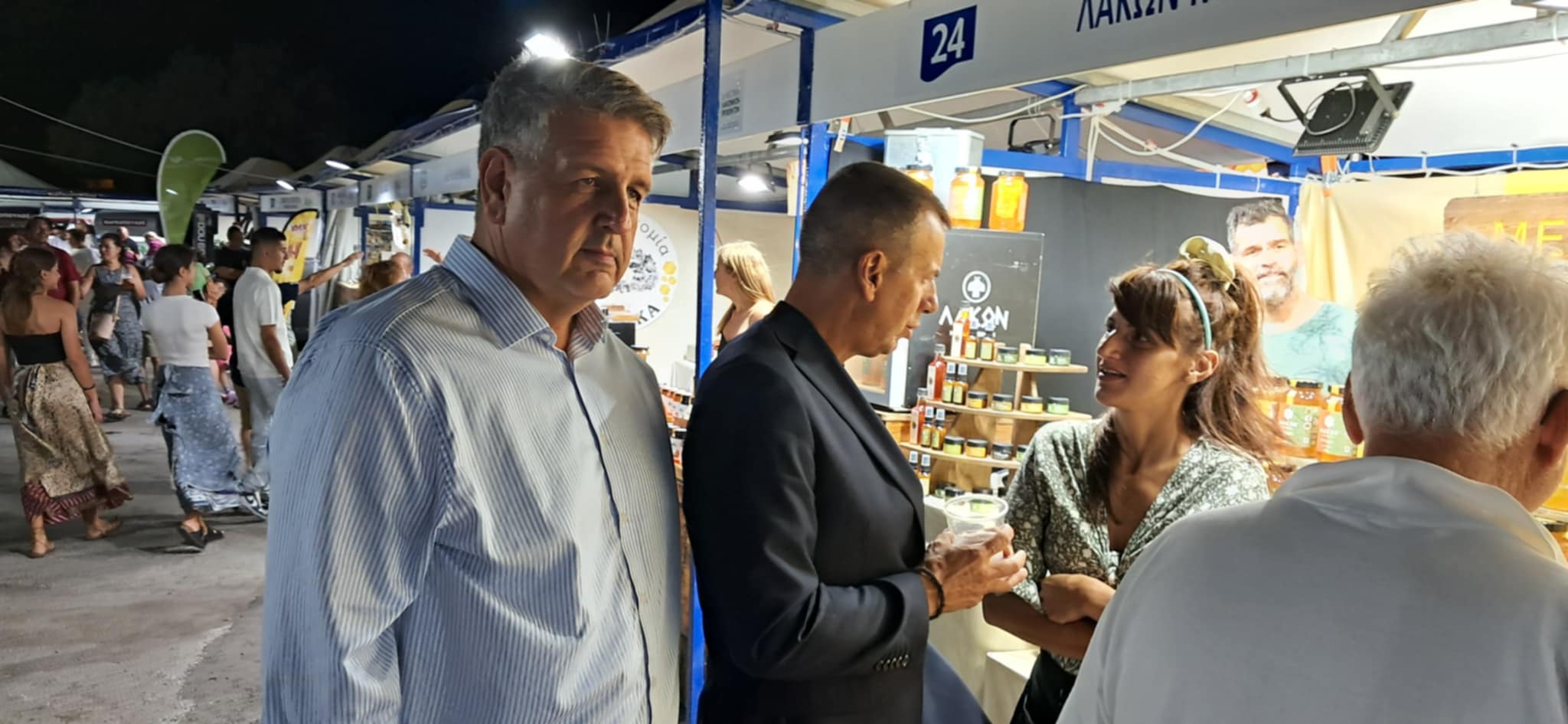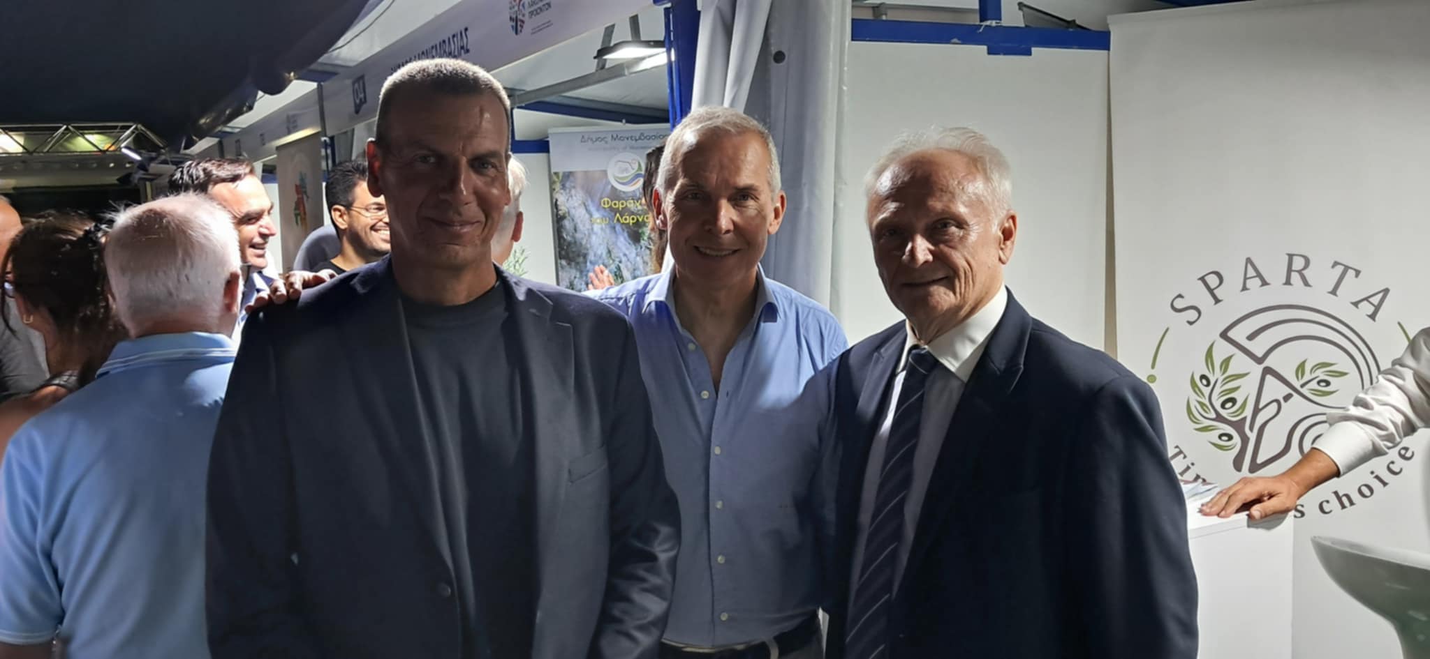 Ο κ. Βακαλόπουλος καλωσόρισε τους προσκεκλημένους στο περίπτερο του Δήμου Σπάρτης στην έκθεση και περιηγήθηκε στα περίπτερα φορέων και επιχειρήσεων, συνομιλώντας με παραγωγούς, επιχειρηματίες και επισκέπτες.