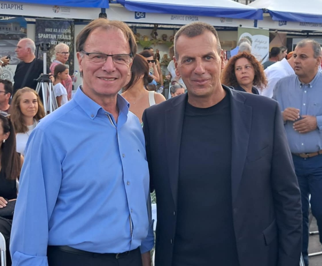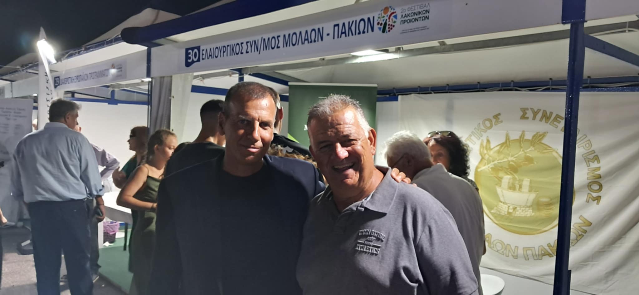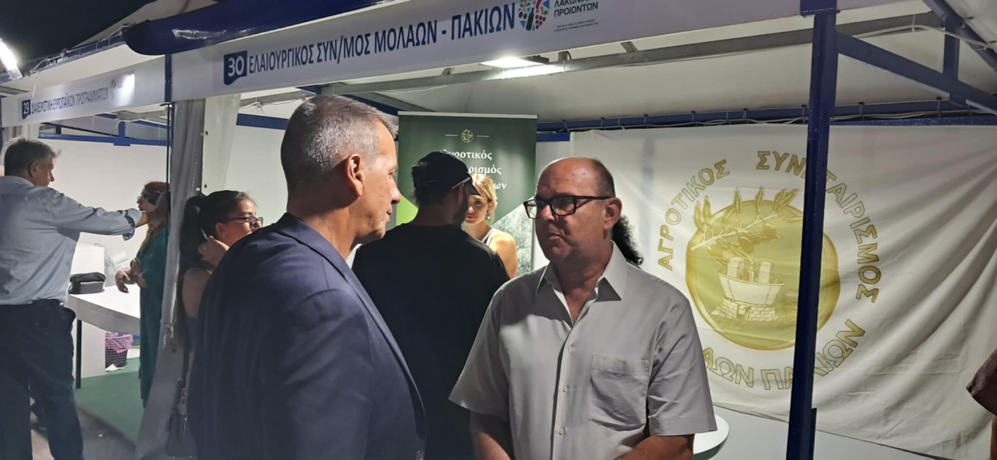 Ο κ. Βακαλόπουλος καλωσόρισε τους προσκεκλημένους στο περίπτερο του Δήμου Σπάρτης στην έκθεση και περιηγήθηκε στα περίπτερα φορέων και επιχειρήσεων, συνομιλώντας με παραγωγούς, επιχειρηματίες και επισκέπτες.