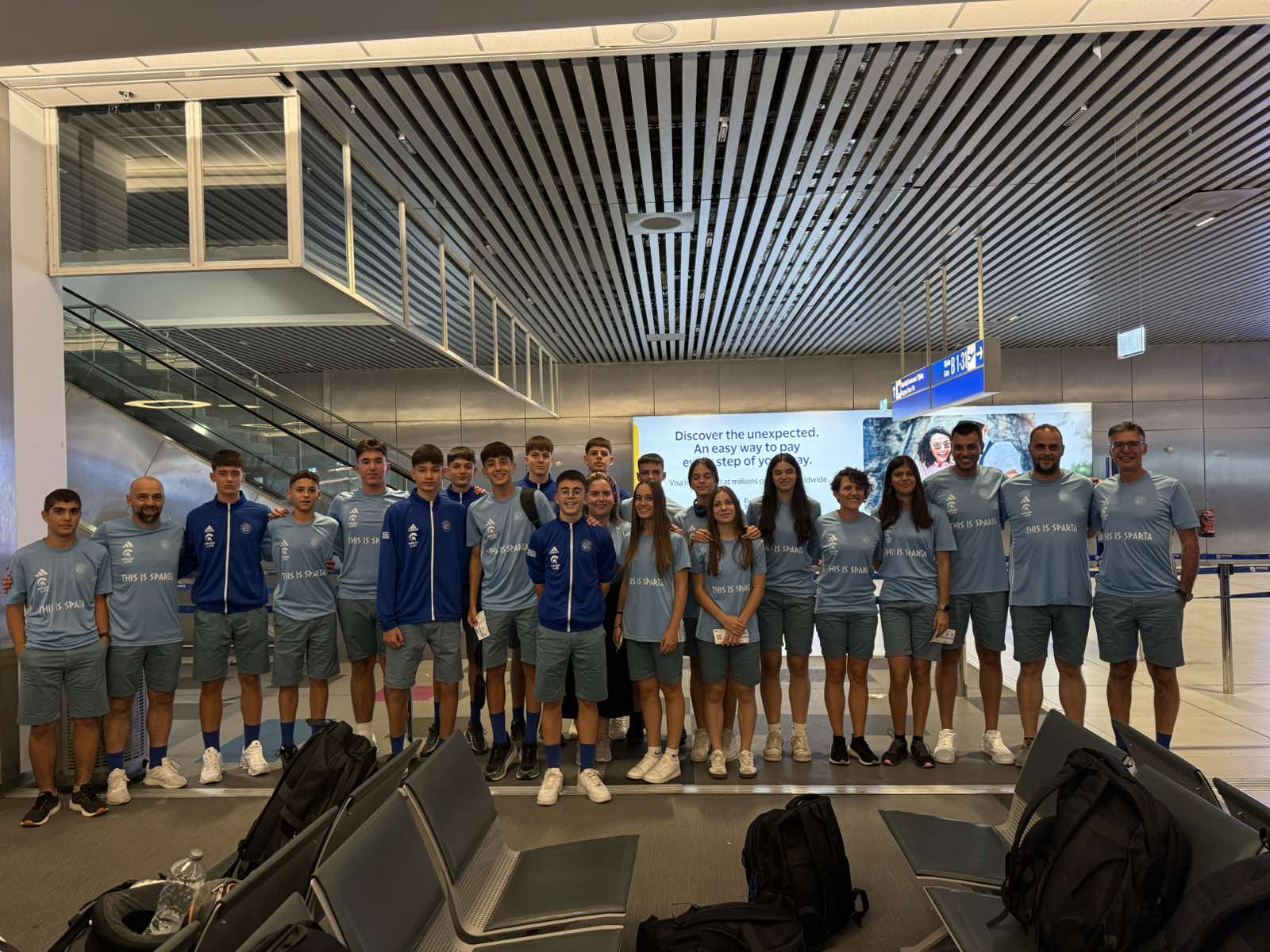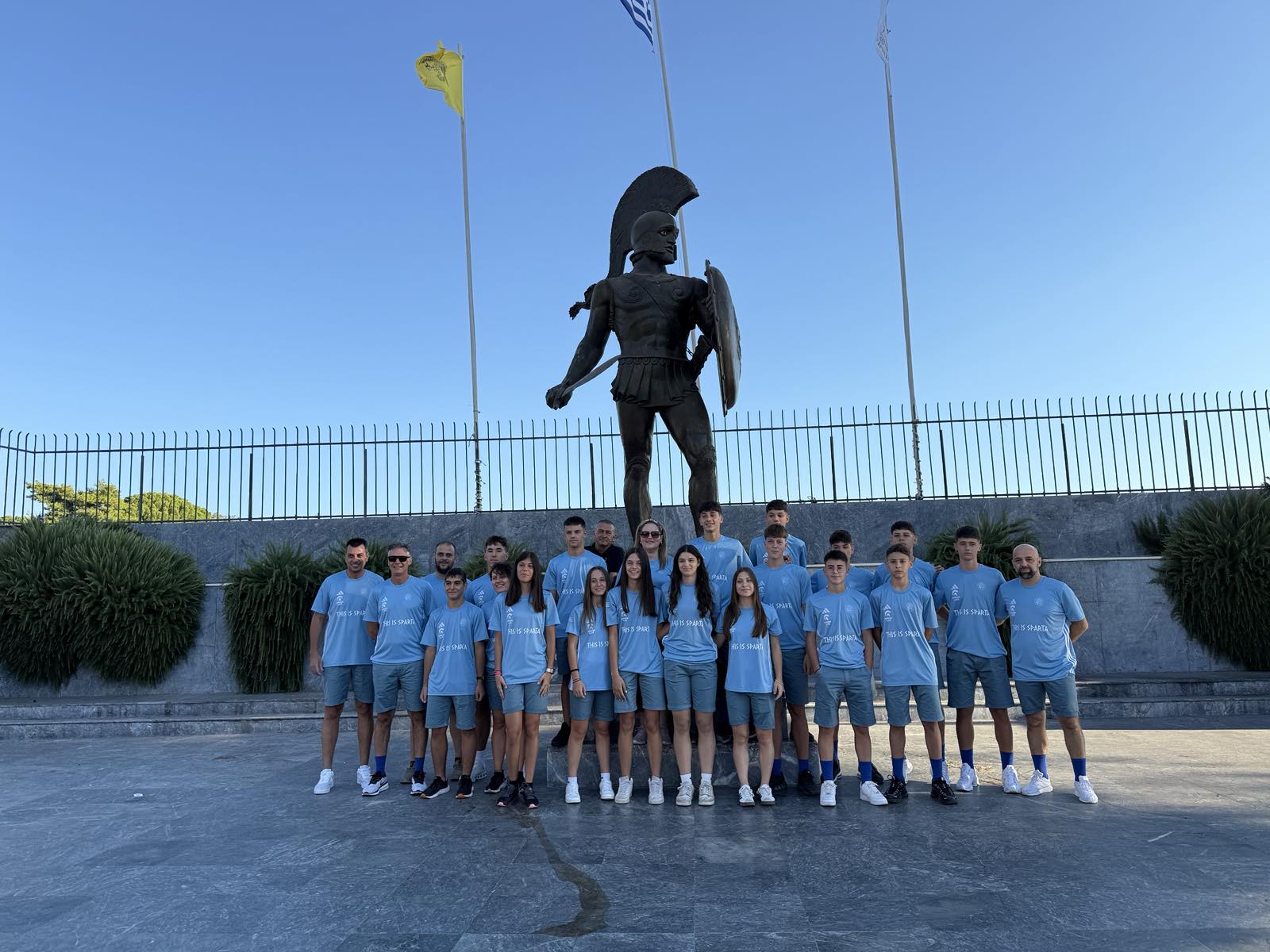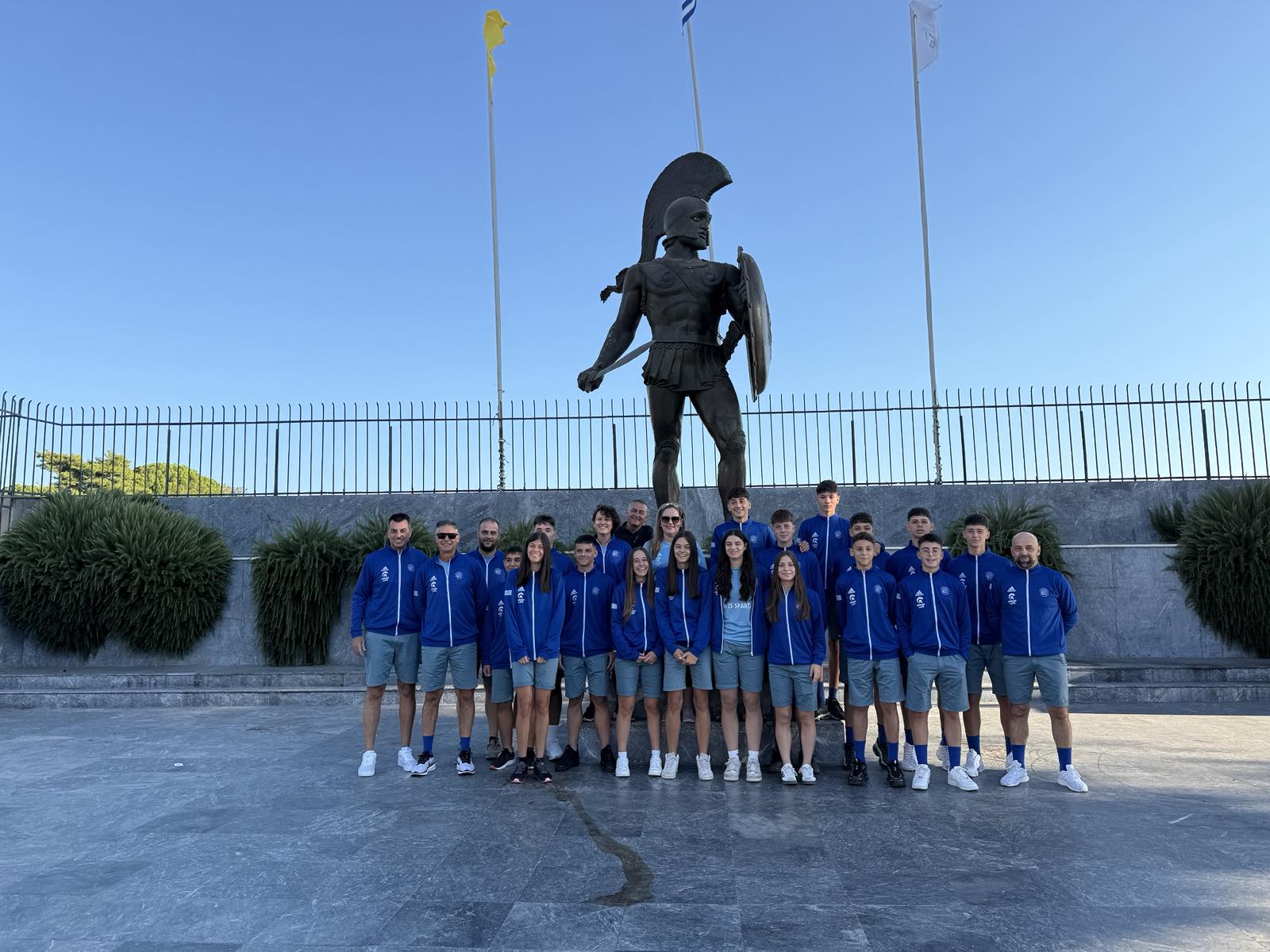 Στο πλευρό τους βρίσκονται η αρχηγός της αποστολής, Ευγενία Παπαδάκη και οι προπονητές τους, η Λυδία Κονίδη στον στίβο, ο Φίλιππος Καπονικολός στο ποδόσφαιρο και ο Ιωάννης Ρηγάκος στο beach volley. Εμψυχωτές τους ο Αντιδήμαρχος Κοινωνικής Πολιτικής, Παιδείας και Δ.Ε. Μυστρά, κ. Θεοφάνης Λάζαρης και ο Εντεταλμένος Δημοτικός Σύμβουλος Πολιτισμού, κ. Σπύρος Σελίμος.