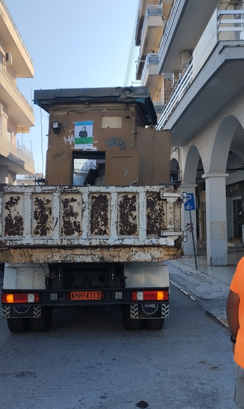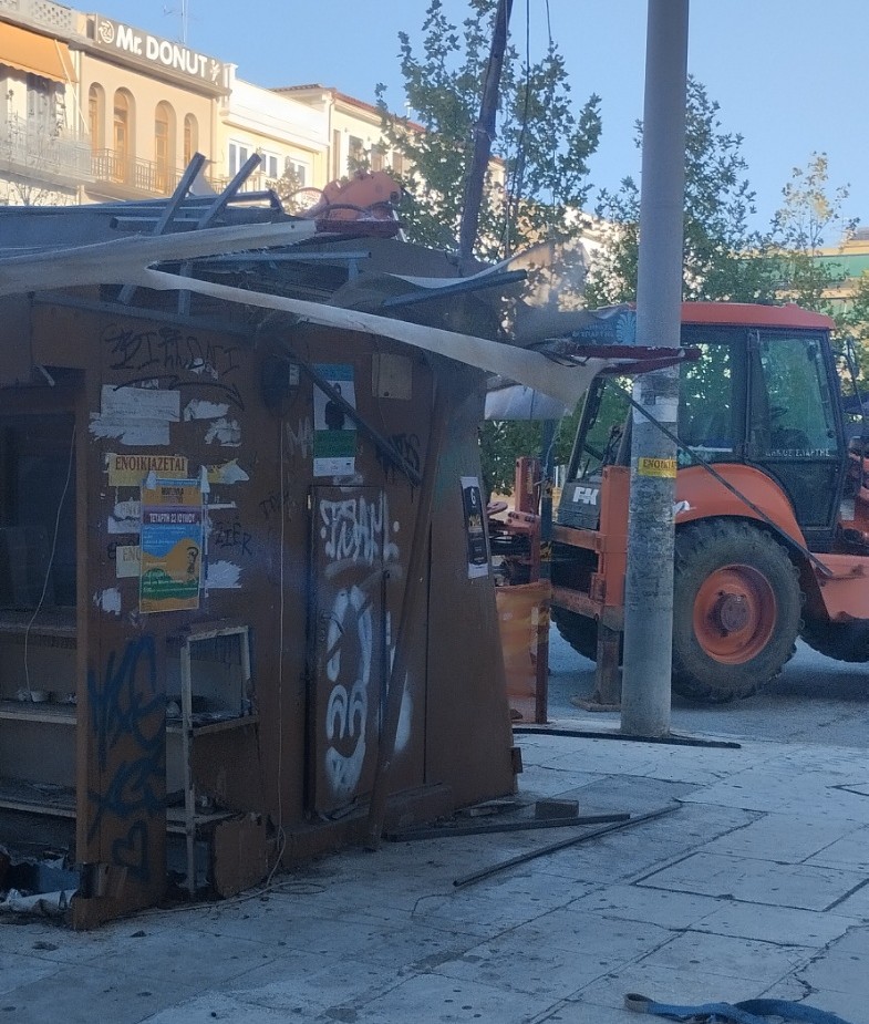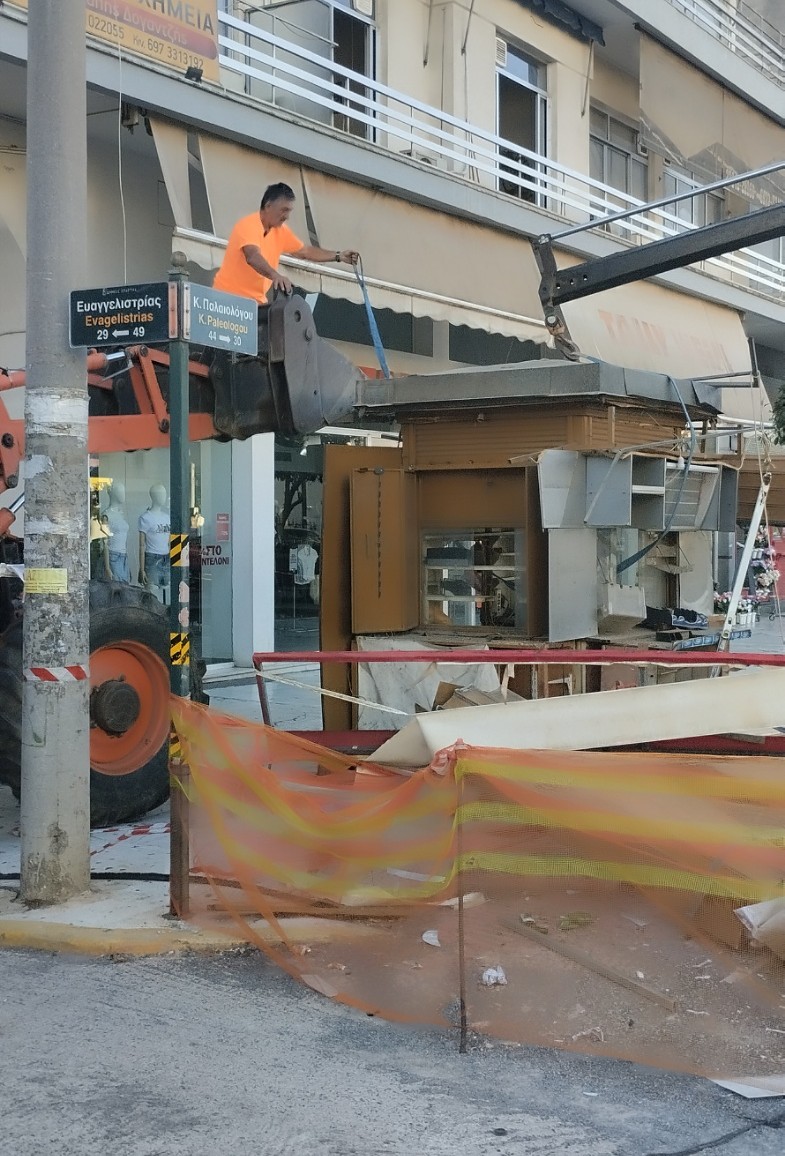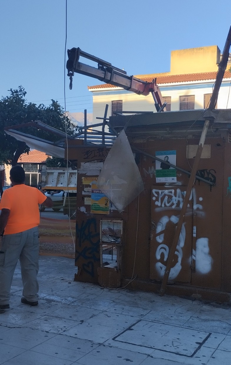 Στην απομάκρυνση του περιπτέρου, που βρισκόταν στη συμβολή των οδών Παλαιολόγου και Ευαγγελιστρίας, προχώρησαν την Πέμπτη 4 Σεπτεμβρίου 2025 τα συνεργεία του Δήμου Σπάρτης.