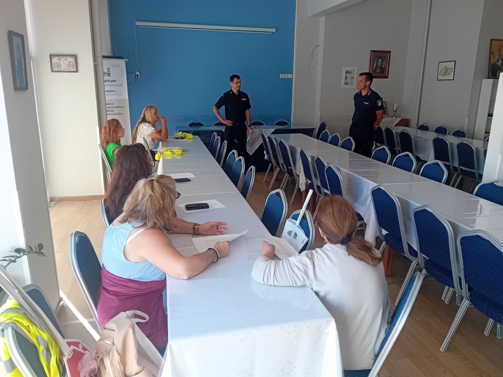 Ο Διοικητής της Τροχαίας Λακωνίας, Αστυνόμος Α΄ Βασίλειος Μαυροειδόγγονας και ο Υποδιοικητής, Αστυνόμος Β΄ Ιωάννης Πλευρίτης, παρουσία του Αρμόδιου Αντιδημάρχου Παιδείας, κ. Θεοφάνη Λάζαρη και του Εντεταλμένου Δημοτικού Συμβούλου Πρωτοβάθμιας Εκπαίδευσης, κ. Παναγιώτη Μπαρέλου, εκπαίδευσαν τις σχολικές τροχονόμους, οι οποίες θα φροντίζουν για την ασφαλή μετακίνηση των μικρών μαθητών από και προς τις σχολικές μονάδες τους.