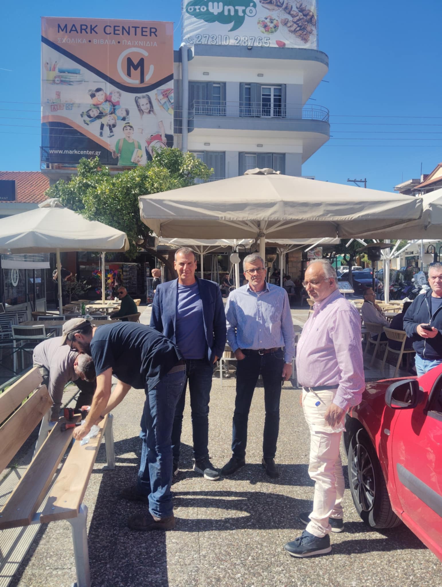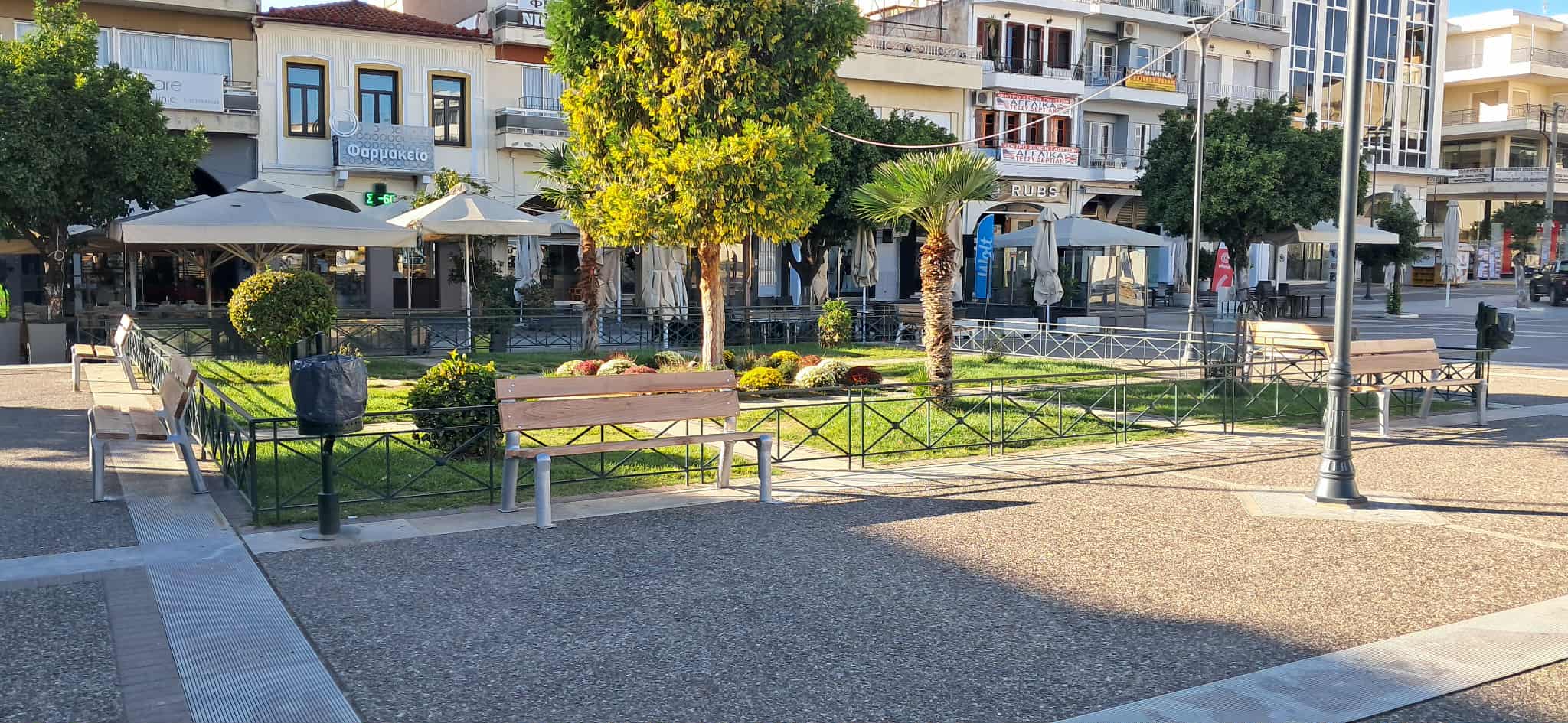 Τα νέα παγκάκια, που τοποθετήθηκαν γύρω από τα κεντρικά παρτέρια της πλατείας, καθώς και η συντήρηση των υφιστάμενων, έρχονται να αυξήσουν τους χώρους ξεκούρασης, συνάντησης και κοινωνικής επαφής των δημοτών.