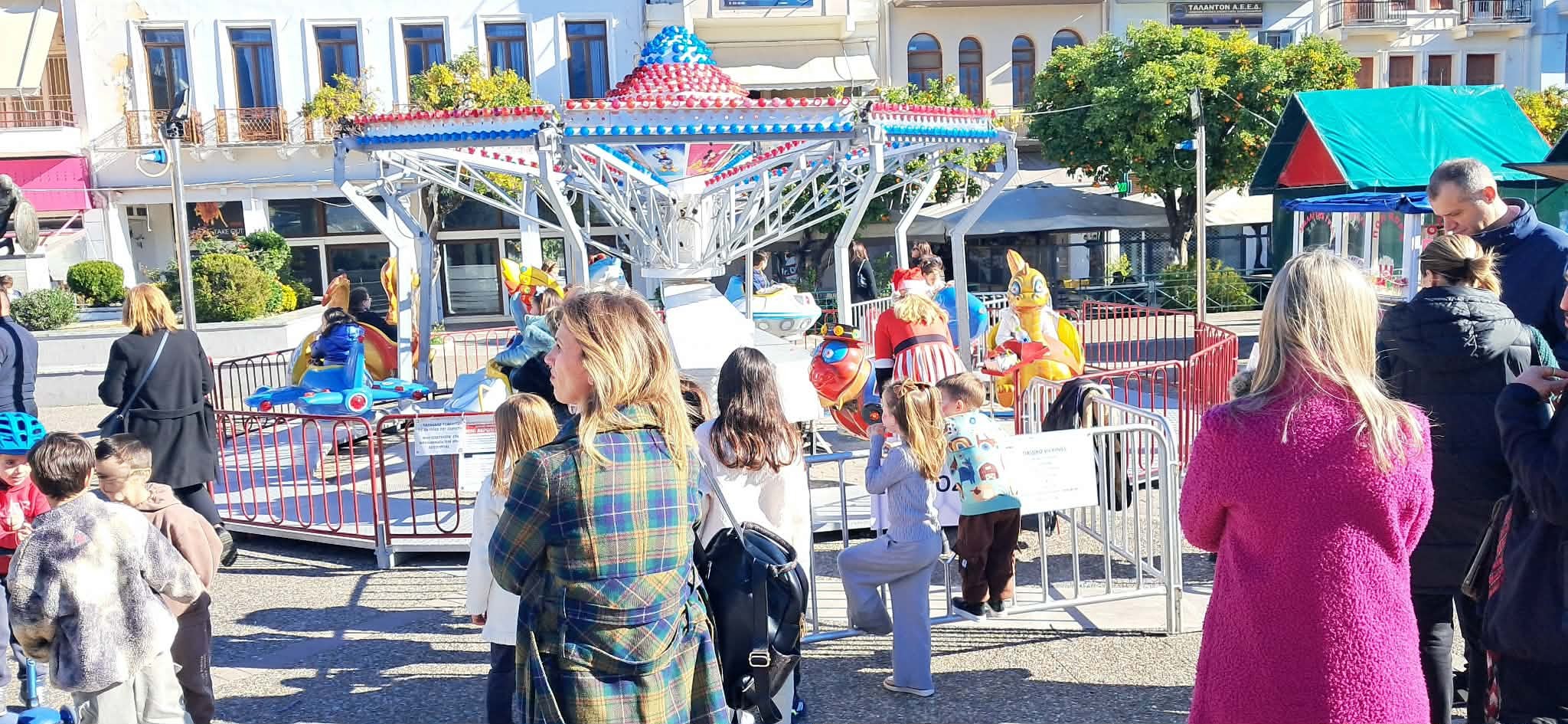 Από τις 11:00 έως τις 13:00 το πάρκο του ΟΤΕ γέμισε με γέλιο, μουσική και χορό, καθώς μια μασκότ χιονάνθρωπος και ξωτικά έπαιξαν παιχνίδια, τραγούδησαν και χόρεψαν γνωστούς χριστουγεννιάτικους ρυθμούς μαζί με τα παιδιά και τους γονείς, που έσπευσαν να διασκεδάσουν με σύμμαχο τον ήλιο και την καλή διάθεση. Την ίδια ώρα πλήθος κόσμου συγκεντρωνόταν στην κεντρική πλατεία της Σπάρτης, όπου λειτουργεί το χωριό του Άγιου Βασίλη, με τους μικρούς φίλους να απολαμβάνουν το παιχνίδι και τα γλυκίσματα.