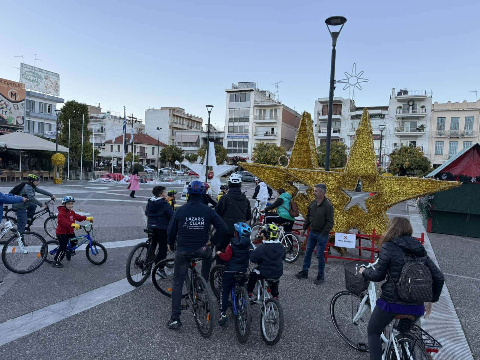 Στις 16:45 μικροί και μεγάλοι ποδηλάτες, με σημείο εκκίνησης την κεντρική πλατεία της Σπάρτης και μαζί με τον Αντιδήμαρχο Αθλητισμού & Πολιτισμού, Παναγιώτη Κουρτσούνη και τον Εντεταλμένο Δημοτικό Σύμβουλο Πολιτισμού, Σπύρο Σελίμο, φόρεσαν τα σκουφάκια τους και συμμετείχαν σε μια μοναδική Χριστουγεννιάτικη ποδηλατάδα στις φωτισμένες πλατείες της πόλης.