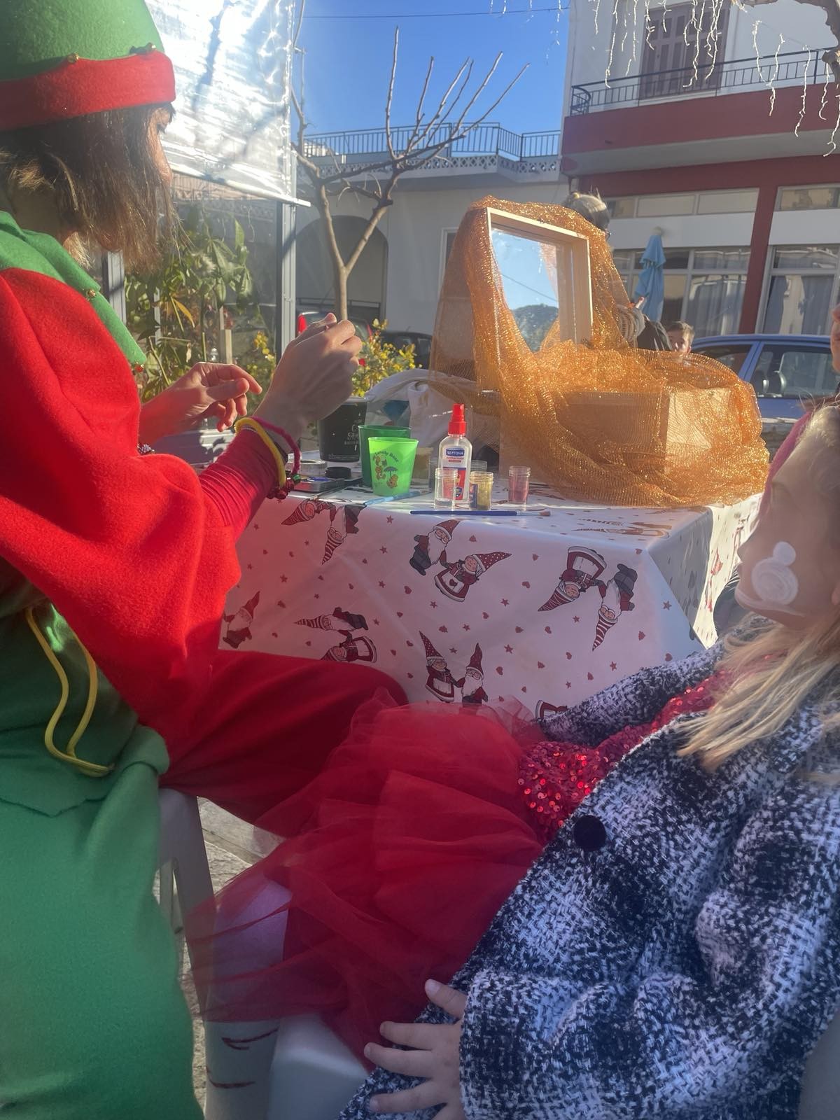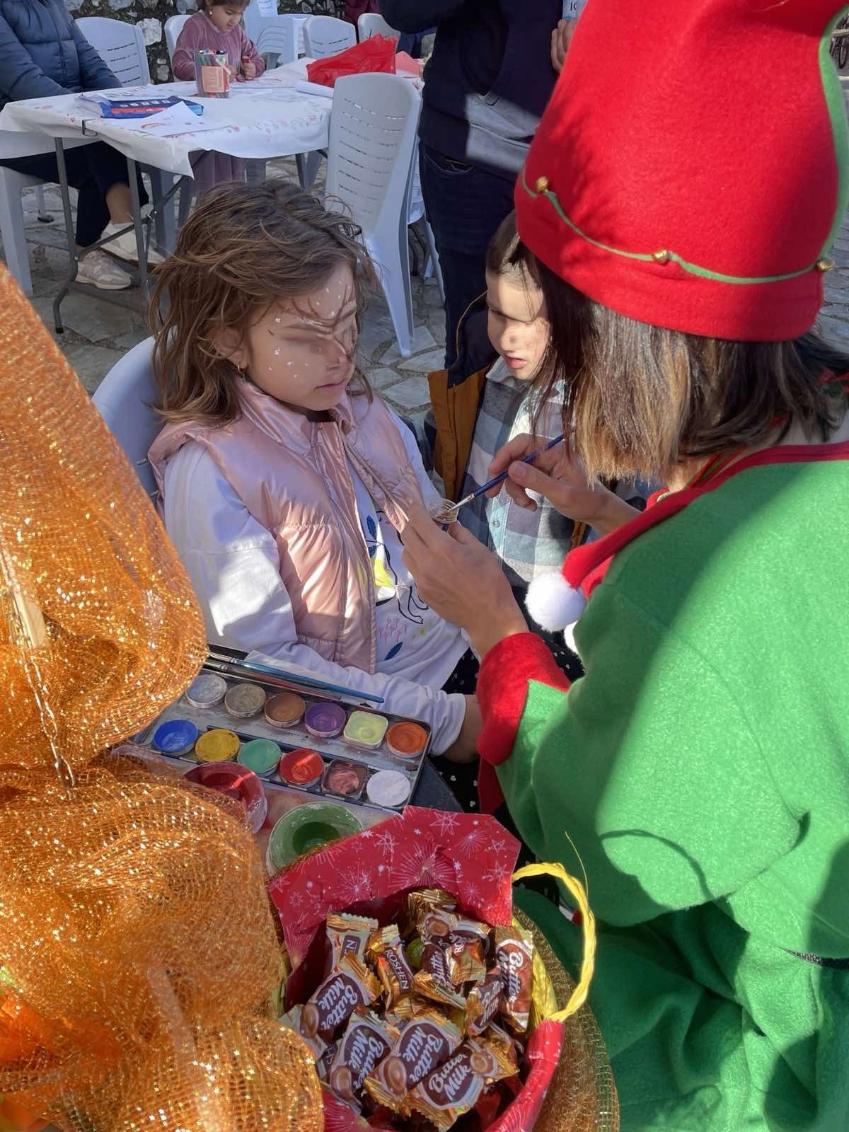 Στις 15:00 το μεσημέρι η Χριστουγεννιάτικη γιορτή που διοργανώθηκε στην Κοινότητα της Παλαιοπαναγιάς, παρουσία της Αντιδημάρχου Φάριδος, Διαμάντως Βαγιακάκου-Δογαντζή, απογείωσε το κέφι με μουσική, γλυκίσματα και δράσεις για τα μικρά παιδιά, όπως ζωγραφική προσώπου.