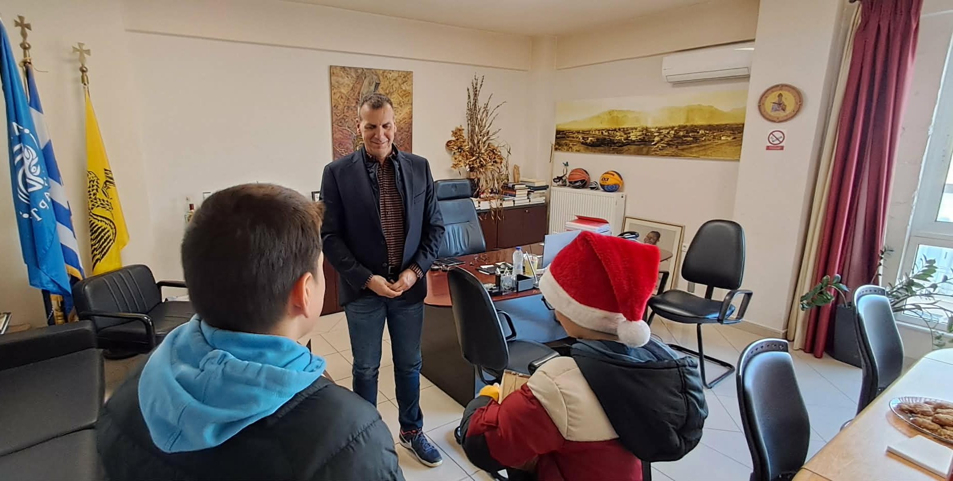 Τα παραδοσιακά Κάλαντα και ευχές δέχθηκε ο Δήμαρχος Σπάρτης, κ. Μιχάλης Βακαλόπουλος, στο γραφείο του την παραμονή της Πρωτοχρονιάς, Τετάρτη 31 Δεκεμβρίου 2025.