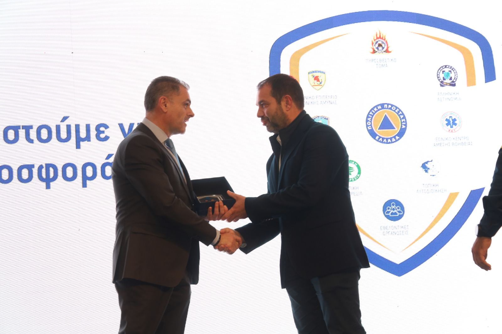 Τα βραβεία παρέλαβαν ο Αντιδήμαρχος Πολιτικής Προστασίας Σπάρτης, κ. Δημοσθένης Κακούρος και ο Υπάλληλος της Πολιτικής Προστασίας, κ. Ηλίας Κούρος, οι οποίοι εξέφρασαν τις ευχαριστίες τους προς τον Υπουργό για την αγαστή συνεργασία τους και την απονομή της τιμητικής διάκρισης.
