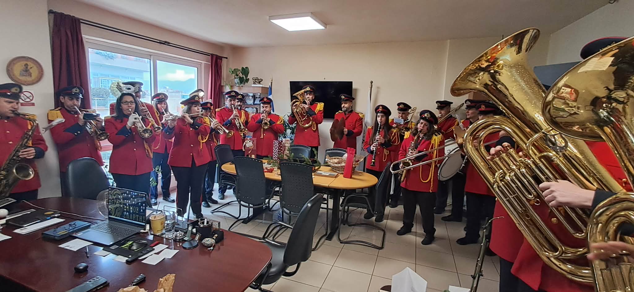 Με πολλές ευχές για το νέο έτος έπαιξαν τα κάλαντα της Πρωτοχρονιάς τα μέλη της Φιλαρμονικής Ορχήστρας του Δήμου Σπάρτης, με τον Δήμαρχο να εξαίρει τον μαέστρο και τα μέλη της ορχήστρας για την πολύπλευρη πολιτιστική τους συνεισφορά και να εύχεται Υγεία, Αγάπη και Ευημερία για όλο τον κόσμο.