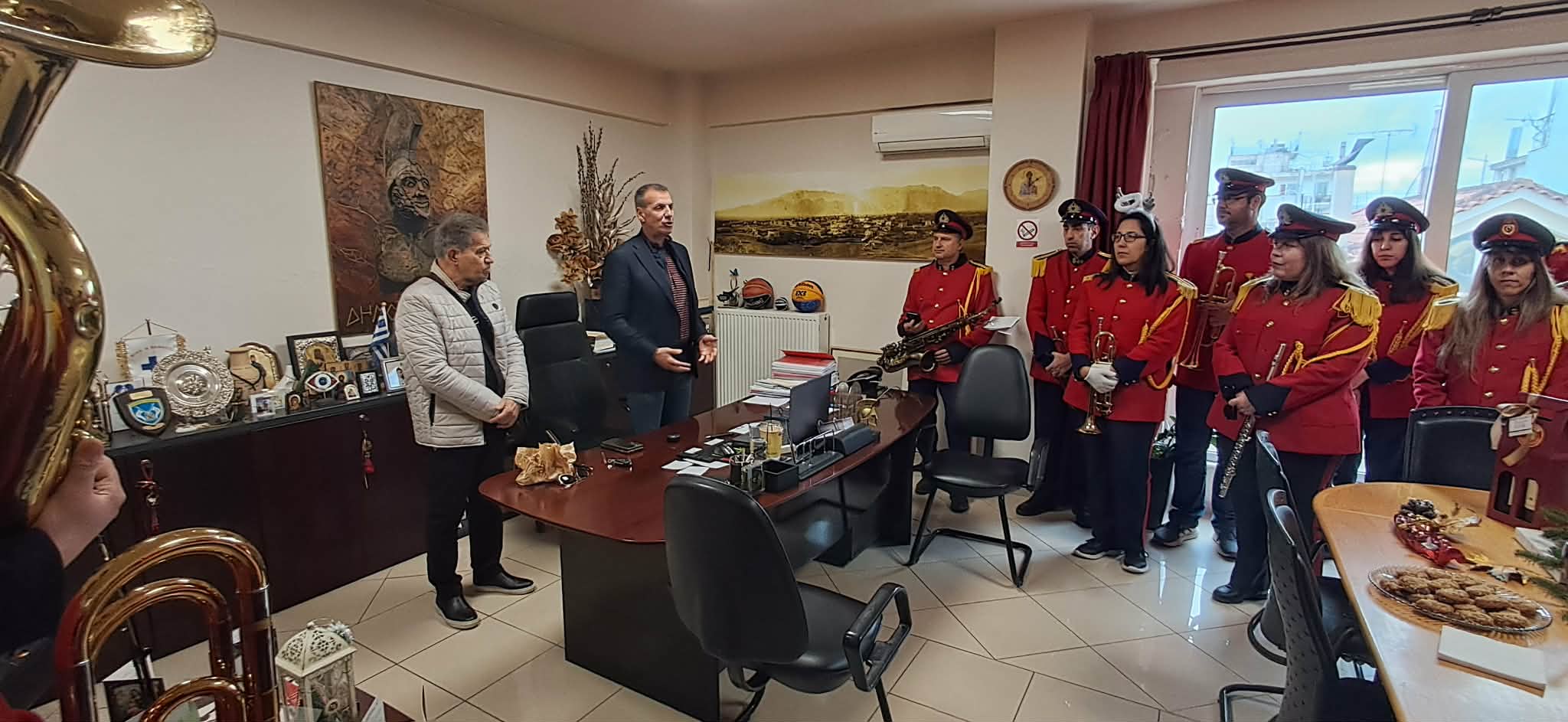 Τα παραδοσιακά Κάλαντα και ευχές δέχθηκε ο Δήμαρχος Σπάρτης, κ. Μιχάλης Βακαλόπουλος, στο γραφείο του την παραμονή της Πρωτοχρονιάς, Τετάρτη 31 Δεκεμβρίου 2025.