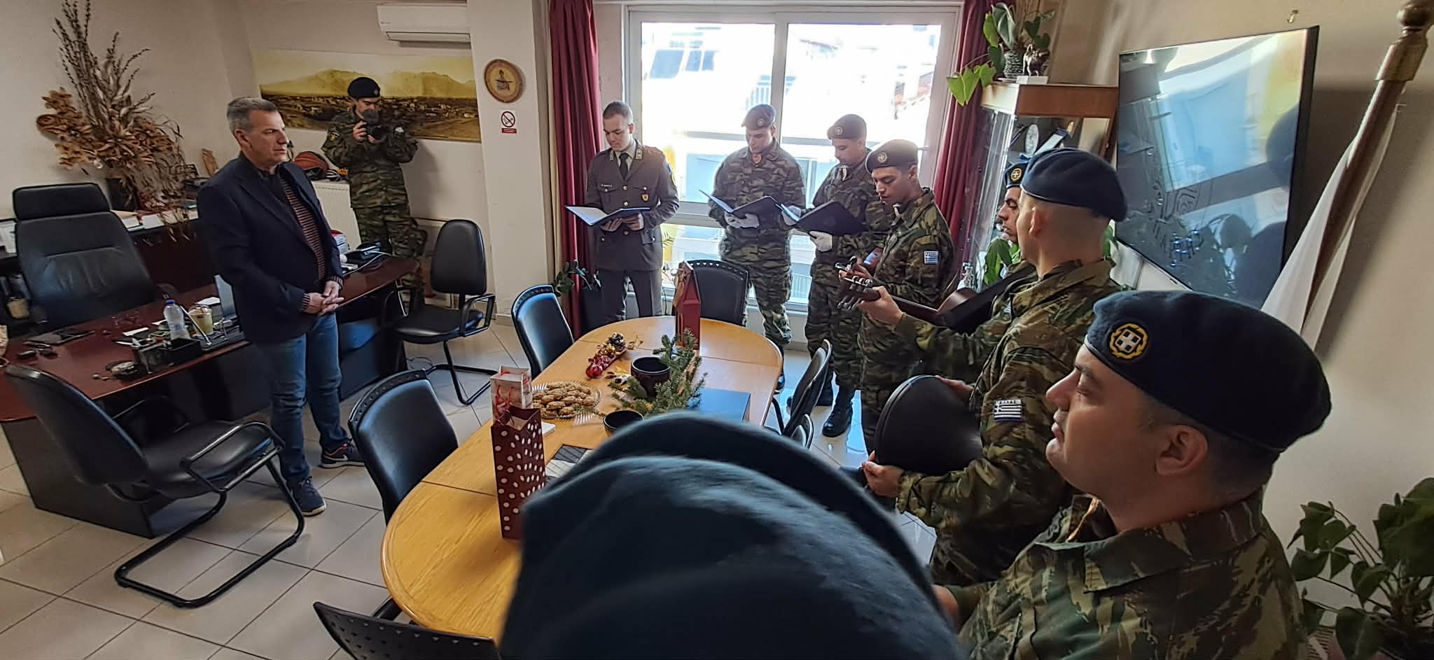 Από νωρίς το πρωί, μικρά παιδιά έψαλαν τα παραδοσιακά κάλαντα, ενώ οι στρατιώτες του ΚΕΕΜ τραγούδησαν κάλαντα από διάφορες περιοχές της χώρας, όπως η Χίος και η Ικαρία.