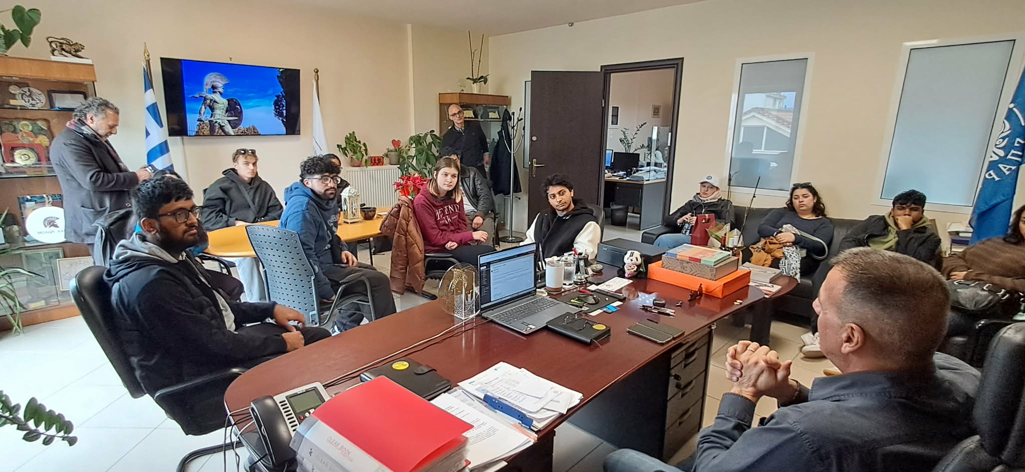 Μια διαφορετική επίσκεψη δέχθηκε ο Δήμαρχος Σπάρτης, κ. Μιχάλης Βακαλόπουλος την Παρασκευή 16 Ιανουαρίου 2026 στο γραφείο του. Πρόκειται για ομάδα φοιτητών Κοινωνιολογίας του Queens College της Νέας Υόρκης, οι οποίοι ταξίδεψαν στην Ελλάδα και επισκέφτηκαν τη Σπάρτη.