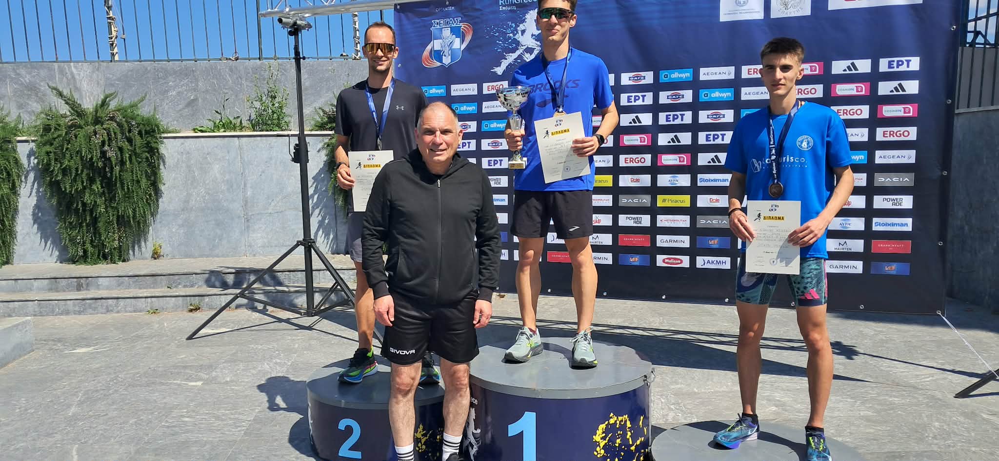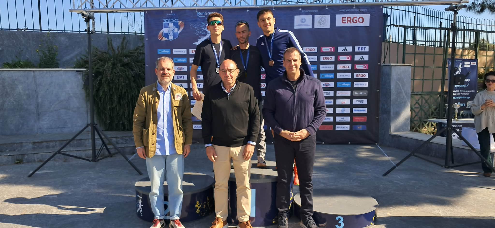 Ο αντιπρόεδρος του ΣΕΓΑΣ, Γιώργος Καλαντζής και ο Βουλευτής Νεοκλής Κριτικός στην απονομή των 5χλμ. με τους Μανιφάβα, Λαγό και Μπιλιανό