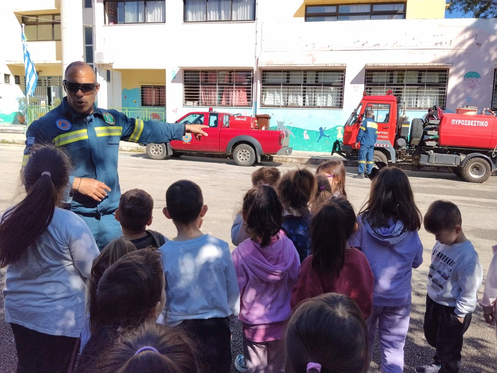 Τα μέλη της Πολιτικής Προστασίας του Δήμου Σπάρτης ενημέρωσαν τους μικρούς μαθητές για το πώς πρέπει να αντιδρούμε όταν έρθουμε αντιμέτωποι με φυσικά φαινόμενα και κυρίως με πυρκαγιές.