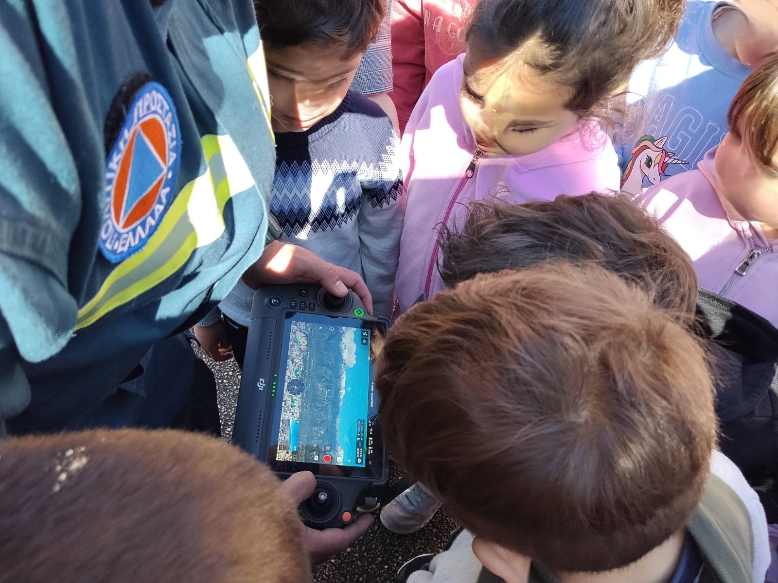 Έδειξαν στα παιδιά τον εξοπλισμό που χρησιμοποιεί η Πολιτική Προστασία, όπως το ντρόουν, το οποίο μεταδίδει απευθείας εικόνα από τις περιοχές ενός συμβάντος στο Επιχειρησιακό Κέντρο της Πολιτικής Προστασίας του Δήμου, τον εξοπλισμό τεχνικής διάσωσης, καθώς και τον εξοπλισμό διάσωσης σε ορμητικά νερά, τις ειδικές στολές, τα σωσίβια, τα κράνη κ.λπ. Ενθουσιασμένα τα παιδιά έμαθαν για τον εξοπλισμό που χρησιμοποιεί η Πολιτική Προστασία, ενώ συμμετείχαν και σε επίδειξη ρίψης νερού.